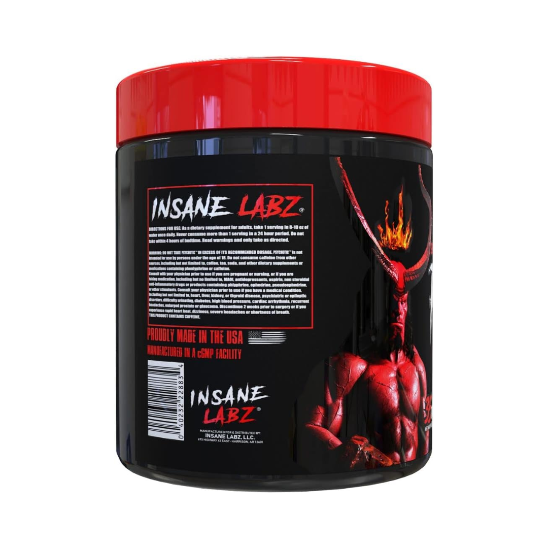 Insane Labz · 35 servicios · High Stim Pre-Workout. 300mg de cafeína en tres fuentes distintas, AMPiberry exclusivo y hasta 5 horas de efecto sostenido — el más intenso de toda la familia Psychotic.